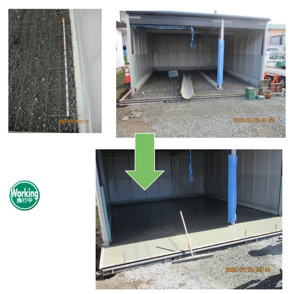 この後は、ガレージ前のスペースにも土間コンクリートを打設予定とあっています。
