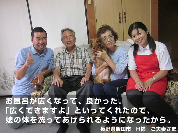 お二人がいつも娘さんのことを気にかけていたので、将来ご両親と、娘さんが御年をとっても、快適で、安全で苦労することなくお風呂に入れるように、提案させていただきました。あと、「お風呂が狭い」と言ってましたもんね。