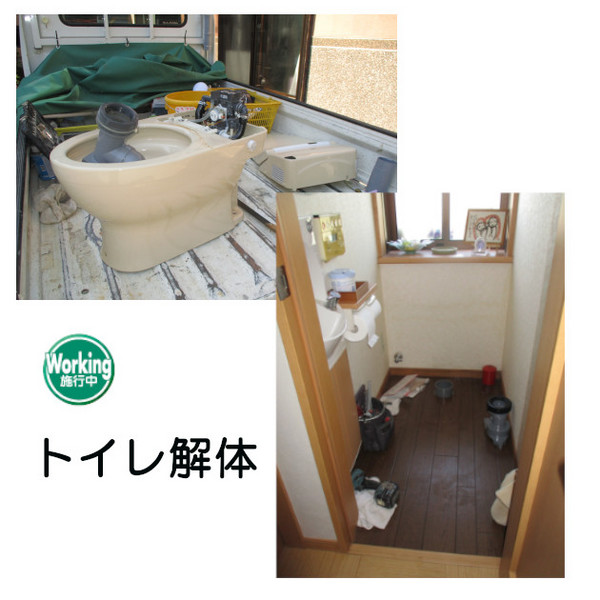 トイレリフォーム工事【現場日記】トイレ入れ替え☆解体 こんにちは飯田市のリフォーム屋さん 恵夢住宅設計室の 田中です。今日も、リフォーム工事中の現場の”今”をご紹介します♪便器の入れ替え工事が始まりました。解体工事中です。この後、新しい便器を設置します。無料お見積はこちら