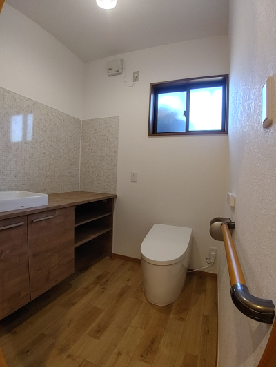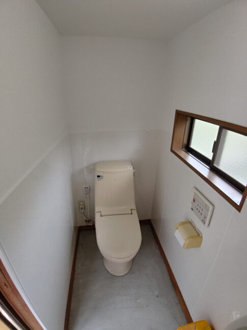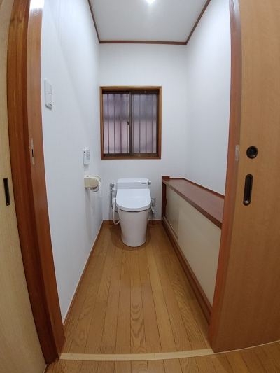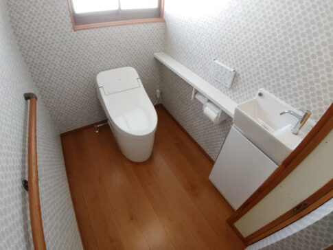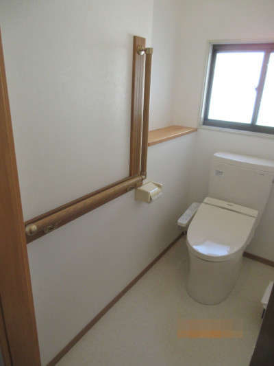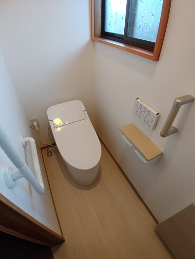 トイレリフォーム工事トイレのリフォーム工事を行いました。床の張り替えを行い、廊下からの三センチあった段差を無くしました。また、窓に内窓サッシを設置し、断熱性が高まりました。 ポイント 暖かく安全なトイレになりました。