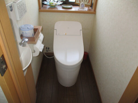 トイレリフォーム工事便器の故障のため、入替えを行いました。一日の工期で新しいトイレに生まれ変わりました。 ポイント 便器の入れ替えを行いました。