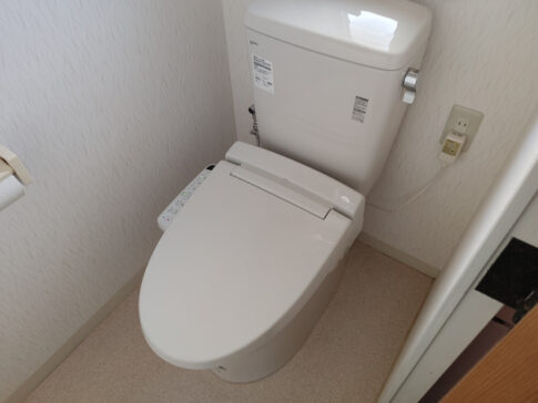 トイレリフォーム工事便器の入れ替えリフォームを行いました。床などの傷みが無く、便器のみの入れ替え工事となりました。 ポイント 便器の入替えを行いました。