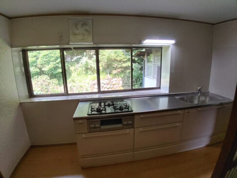 キッチンリフォーム工事キッチンリフォーム工事を行いました。キッチンセットを入れ替え、内装も一新しました。作り付けの棚は撤去し、食器棚を置けるようにしました。 ポイント 明るくお手入れのしやすいキッチンになりました。