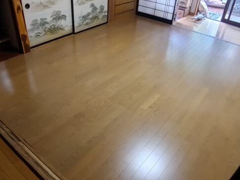 室内リフォーム工事畳の部屋をフローリングにリフォームしました。床に軋みがあり、傷んでいたので、床組みからリフォームしました。 ポイント 床組みから工事しました。