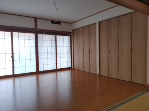 室内リフォーム工事二間続きの和室のリフォームを行いました。二部屋とも、天井壁をクロス貼りに改修し、床は、一部屋をフローリングに、もう一部屋は畳の表替えを行いました。押入と床の間はクローゼットに改修し、大容量の収納ができました。 ポイント ...