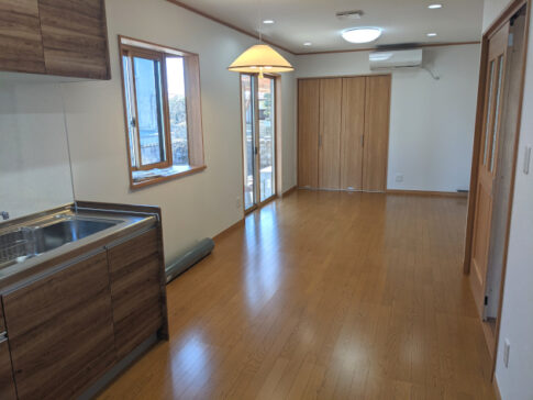 室内リフォーム工事中古住宅のリフォームを行いました。二間続きの和室をLDKにし、水廻りをリフォームしました。また、雨漏りをしていた箇所は修理を行い、断熱サッシに変更しました。