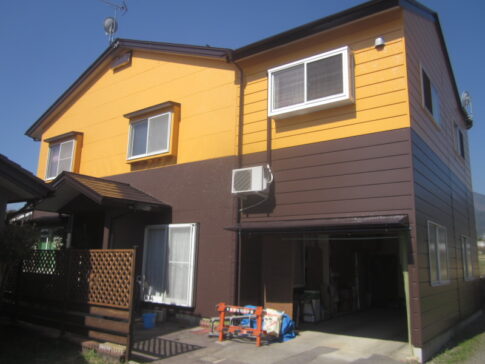 外壁塗装屋根:カラー鉄板 外壁:鉄板サイディング・窯業系サイディングの住宅を塗装しました。塗装後は、明るいイエローとブラウンの色分けをし、明るい印象に生まれ変わりました♪ ポイント 外壁を塗替えたことで、明るい印象になりました!