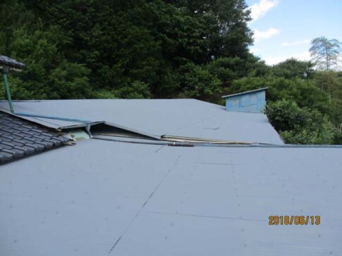 屋根塗装さびの出ていたカラー鉄板屋根を塗装しました。丁寧に研磨を行って錆を落とし、丁寧に三度塗りをしました。 ポイント 錆を落とし、丁寧に塗装しました。