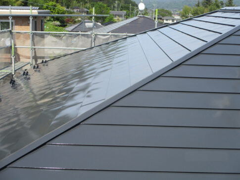 屋根塗装折板屋根の塗装工事を行いました。塗装前には丁寧に高圧洗浄・研磨を行いました。錆の出ていたボルトはキャップをかぶせ、これ以上の劣化を防ぎました。 ポイント 艶が戻り、防水性能がアップしました。