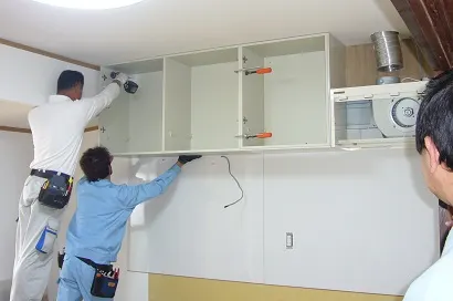 キッチンリフォームKo様邸 キッチン設置完了です!再び、こんにちわ今日は、Ko様邸のキッチン設置でした。パネルが貼り終わり吊り棚を設置しています。結構大きいもので、ビックリしましたでも、さすがです!あっという間に設置していきます完成の様子です以前と比べて明るく広いキッチンへと変身ですKo様の奥さまも「私が使っていいのかしら」と嬉しそうです明日、お引渡しです!あと1日だけ、お待ちください4月11日~工事開始し約2週間の工事です。無事に明日を迎えられてよかったです無料お見積はこちら