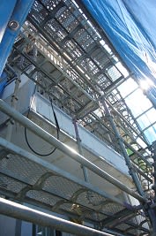 外壁塗装M様邸 高圧洗浄ですこんにちわ今日もお天気で暑い一日でした少しダルイくらいでしょうか・・・。さて、M様邸の外壁の高圧洗浄が済みました正面から見たM様邸です。後ろはというと・・・なんと4階建て高いです・・・頑張って昇りました養生シートの中はこんな感じです。上まで足場が続いています洗浄中の様子です。すごい水しぶきです長年の汚れやほこりがあっという間に流れおちていきます。明日、サビ止めを塗ります。どうかお天気が続きますように無料お見積はこちら