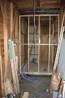 脱衣室 トイレの床と間仕切り壁を施工しました。